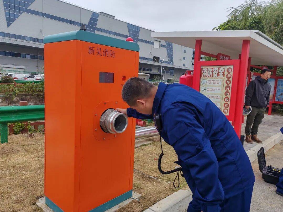 专业化方面,码头配套大口径固定取水口、一体化离心泵组,可供两辆18吨水罐消防车同时停靠取水,消防员抵达后仅需连接水带、一键启动即可完成稳定取水,大幅提升了取水效率;项目建设过程中,新吴大队全程专业指导,在验收阶段严格对照设计规范,通过模拟真实火情取水、流量精度检测、系统响应速度评估等多项关键测试,确保各项指标均达到实战标准。