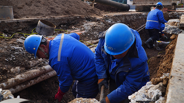 上午7时多,挖掘机等抢修设备与增援人员进场,正式展开开挖作业。现场位于交通要道,且管道埋设环境复杂,既要争分夺秒,又需小心翼翼。即便戴着厚手套,手指也被冻得僵硬麻木。为尽快恢复供水,人员与机械轮番上阵。泥水与冰碴溅满裤腿,很快结上一层薄冰,每一下挥动都格外沉重。